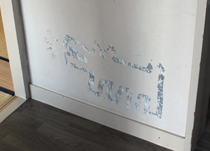 そんな壁なので、当然ながらウォールステッカーを剥がそうとするとペンキが剥がれる事態に!